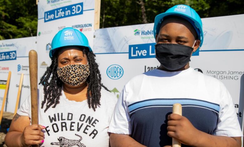 April Stringfield and her son break ground on their 3D-printed house. Photo Credit: Habitat for Humanity Peninsula and greater Williamsburg