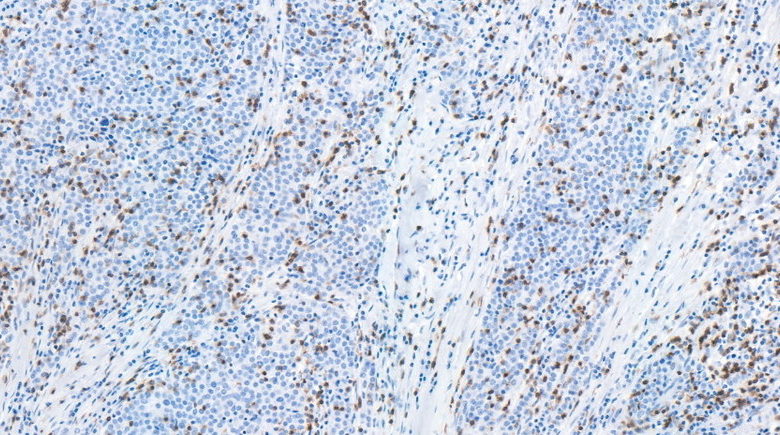 Photo: Image of a Tumor with cancer cells in blue and immune cells in brown