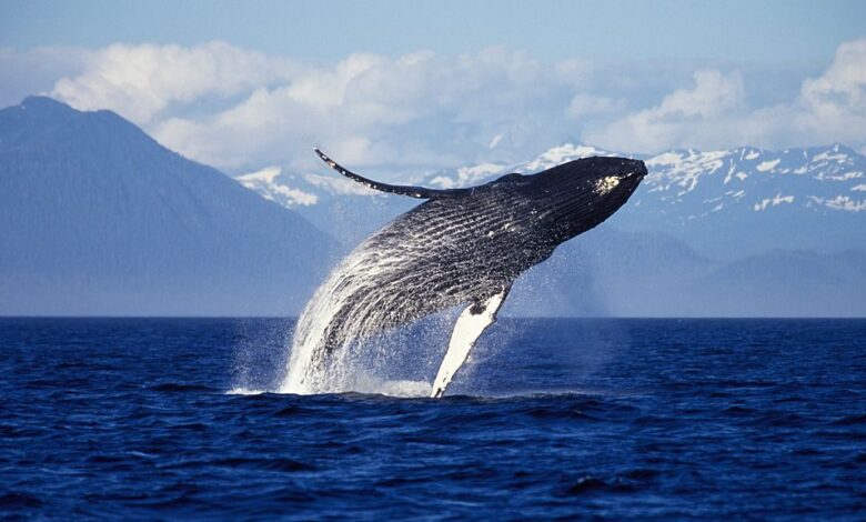 Humpback whale. Megaptera novaeangliae.Breaching. Inside Passage, Southeast Alaska. Photo Credit: VW Pics/Getty Images