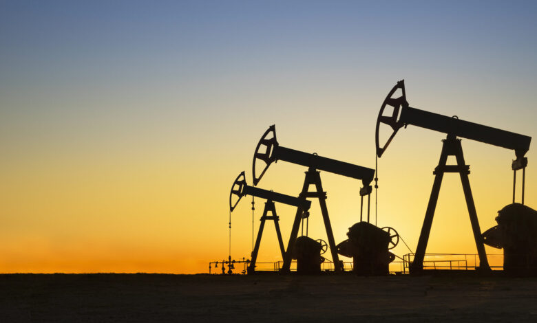 Silhouette of oil wells in desert at sunset, Texas, USA. Photo Credit: Lost Horizon Images via Getty Images