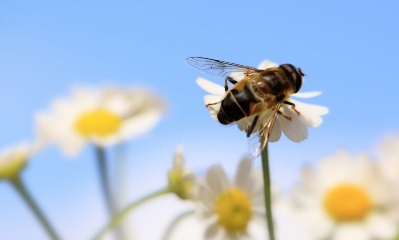 A close-up of a honey bee on a daisy, Utrecht, Netherlands. Photo Credit: LHJB Photography/Getty Images