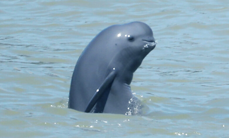 An endangered Yangtze finless porpoise is seen in the river on Aug 16, 2020. Photo Credit: Zhao Zhijie for China Daily