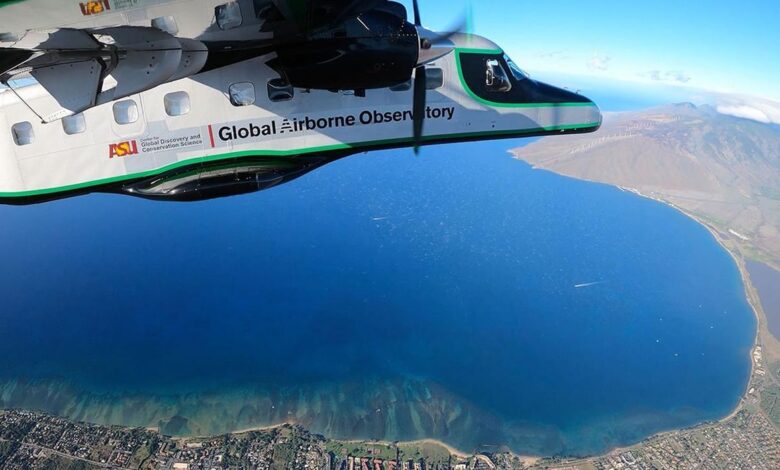 The Arizona State University Global Airborne Observatory on a mapping mission over north Maui Island coast. Photo Credit: Center for Global Discovery and Conservation Science / Arizona State University