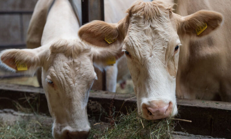Cows eat hay in the barn of farmer Woehner, 26 July 2018, Germany, Neuhaus-Schierschnitz. Photo Credit: Picture Alliance via Getty Images