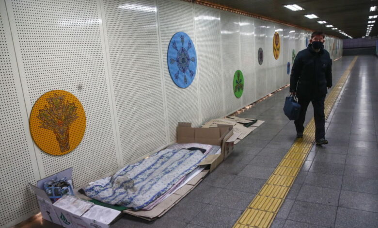 A sleeping place of a homeless in a pedestrian underpass, Seoul, South Korea, February 26, 2018.Photo Credit: Valery Sharifulin/Getty Images