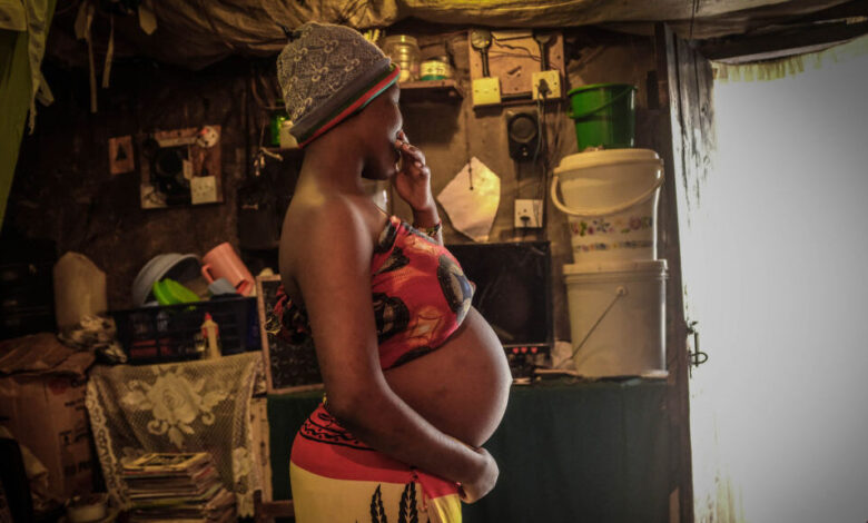 18 year old Viela Akinyi is seen holding her baby bump inside her home in Kibera Slums. Photo Credit: SOPA Images via Getty Images