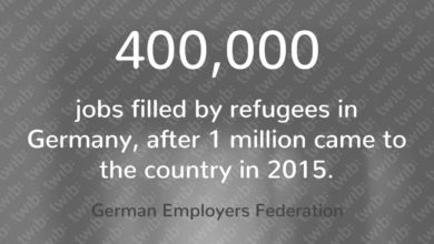 400,000 jobs filled by refugees in Germany, after 1 million came to the country in 2015.