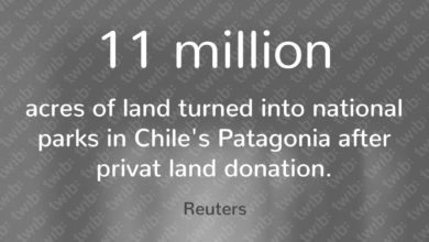 11 million acres of land turned into national parks in Chile’s Patagonia after privat land donation.