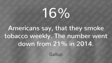 16% Americans say, that they smoke weekly. The number went down from 21% in 2014.
