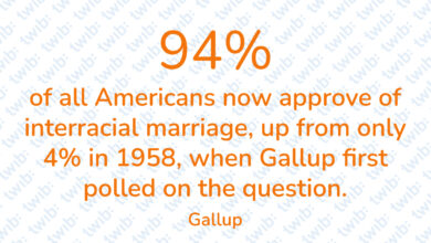 94% of all Americans now approve of interracial marriage, up from only 4% in 1958, when Gallup first polled the question.