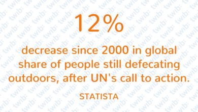 12% decrease since 2000 in global share of people still defecating outdoors, after UN’ call to action.