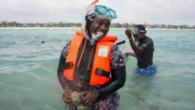 As ocean waters are warming, 13 women from the African island of Zanzibar now turn to sponge farming to earn a living, learning how to swim and even becoming conservationists in an effort to rebalance the ecosystem and prevent overfishing.