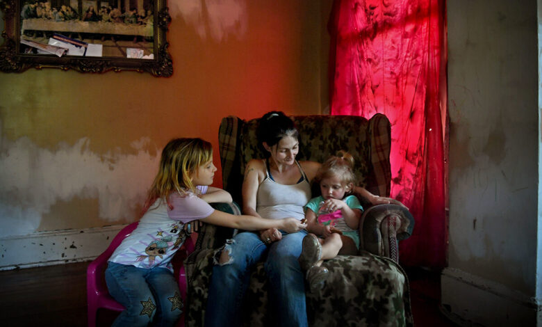 Misty Stanley sits with her daughters Kaylee (left) and Marabella at their home in Welch, West Virginia, on Sept. 9, 2019. McDowell County, West Virginia, is one of the poorest in the nation. Photo Credit: Michael S. Williamson/The Washington Post
